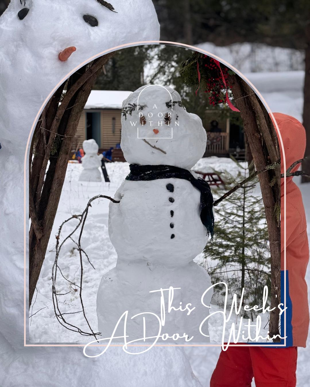 This week the weather has turned warmer and so has the snow. For weeks, my boys have wanted to build a snowman, but it hasn’t been “snowman snow”. With the warmer temperatures, the snow changed and out appeared our ball rolling (and lifting skills). We built two; one to see from our house, and one by the road for our neighbors.